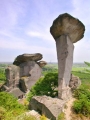 云石、棋盘石,被誉为“天下奇石”,是吼山石景之精华。据《康熙会稽县志》记载,古吼山有八景,首景就是云石。《越绝书》云,“一笋矗霄,可当选十丈,亭亭如云”。云石高二十二米,顶云兀立,奇特而挺秀,一块椭园形巨石仿佛从天外飞来,横卧在细长的石柱上,头重脚轻,摇摇欲坠,令人望而却步。棋盘石,高二十余米,周十余米,底部瘦削,上覆三块犬牙交错的巨石,拔地而起,象一个束发垂髫的童子跪拜观音,巍峨雄奇。
